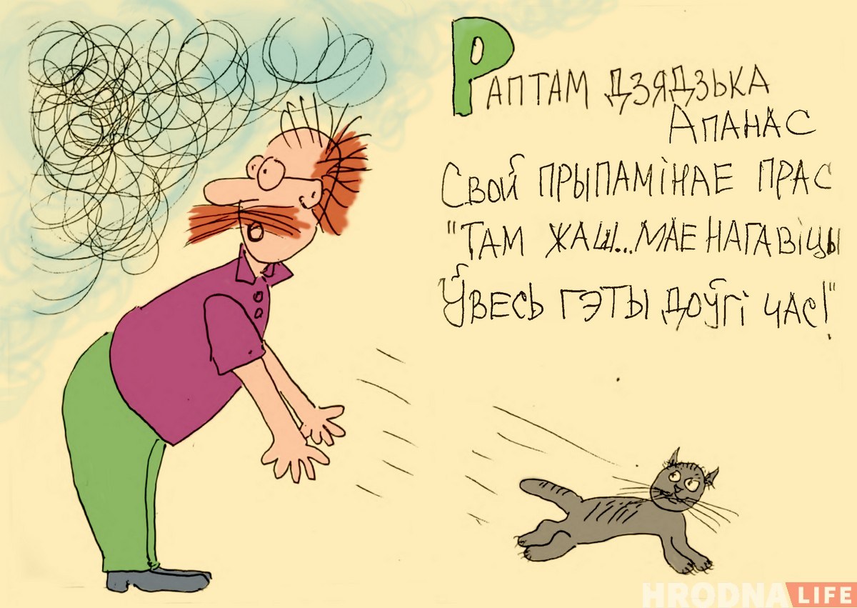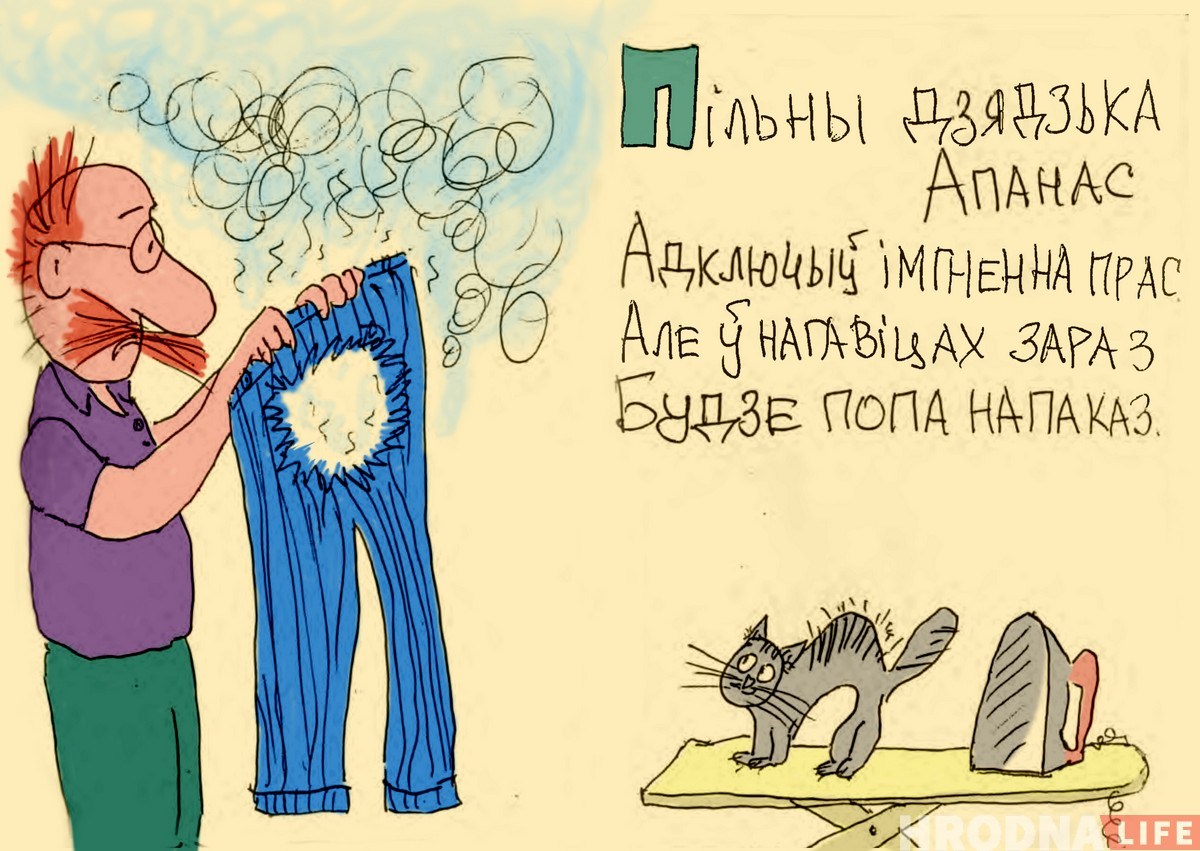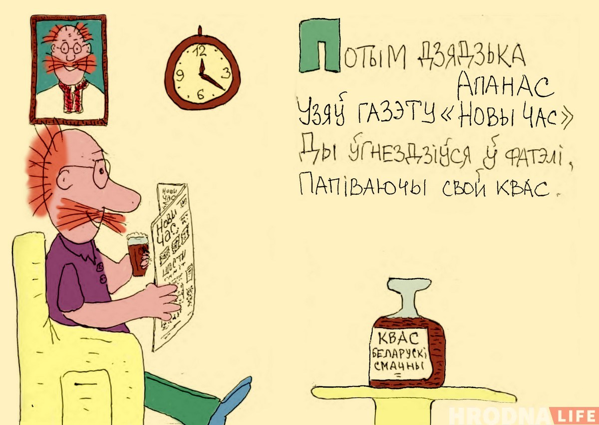 Дзядзя Вася Дзенісюк з вершыка Леаніда Камінскага загаварыў па-беларуску і стаў дзядзькам Апанасам. Беларускамоўны кавер на кніжку-малышку з папулярнага раней часопіса «Весёлые картинки» зрабіў гродзенец Сяржук Верамеенка. Ён намаляваў кніжку ад рукі і пры нагодзе дарыць сябрам. Hrodna.life размаляваў малюнкі і падрыхтаваў лічбавую версію гісторыі дзядзькі Апанаса і яго праса.