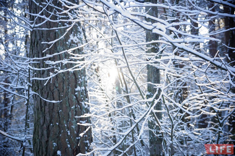 Заснежаны лес выглядаў нязвыкла-чароўна, сцежка здароўя аказалася пачышчанай ад снега, а вось накатаная лыжня ўздоўж яе сустракалася толькі дзе-нідзе. Тым цікавей было каціцца на лыжах па свежым снезе. Пасля пары кіламетраў шпацыру ў лесе ўдалося сустрэць дваіх лыжнікаў.