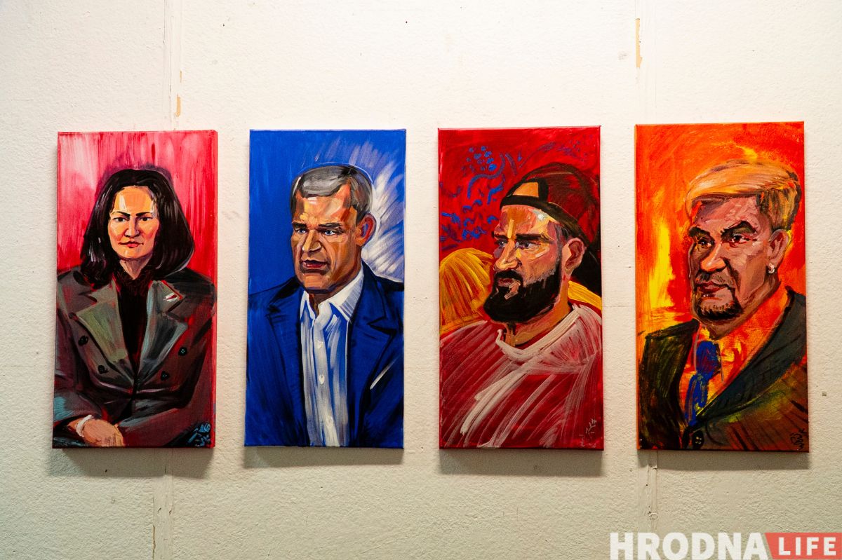Сярод партрэтаў, якія мастак маляваў, выстаўлены выявы Алеся Дзянісава, Максіма Жбанкова, Святланы Ціханоўскай, Зянона Пазняка, Аляксандры Ханевіч, Івана Марозькі, Ігара Банцэра, Паліны Рэспублікі, Кацярыны Ваданосавай.