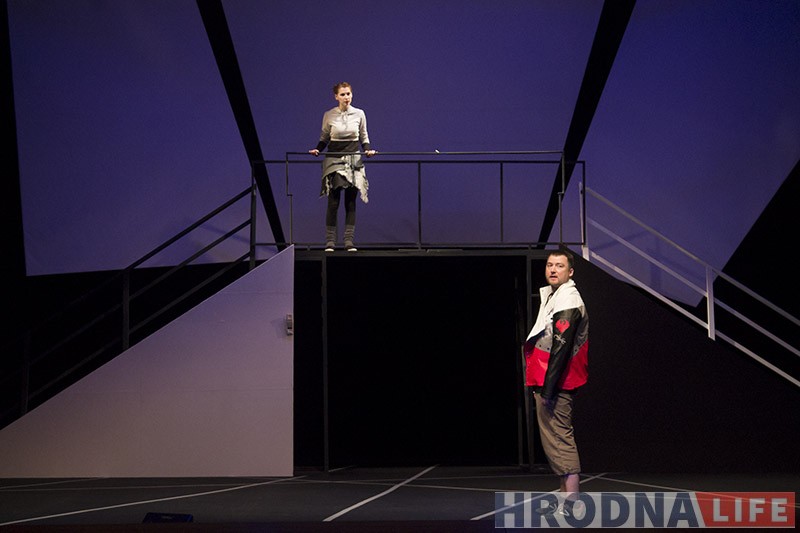 – Гэта манахромная кампазіцыя, у якую вельмі дазавана ўнесены колер. Будуць ламаныя формы, чорная графіка, што падтрымліваюць тую атмасферу, якую будзе стварыць на сцэне актор. Гэта фантастыка і касцюмы па сцэнарыю цалкам не з жыцця, але адаптаваныя.