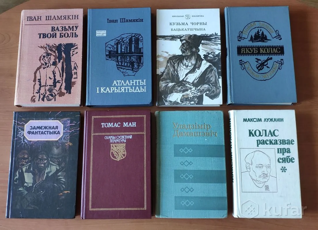 Тры выданні Івана Шамякіна з творамі “Вазьму твой боль”, “Атлатны і карыятыды”, “Экзамен на восень” можна набыць за 11 рублёў. “Бакцькаўшчыну” Кузьмы Чорнага прадаюць за тры рублі. “Песня пра зубра” Гусоўскага 1973 года выдання – 30 рублёў, а вершы і апавяданні Цёткі – 10 рублёў.
