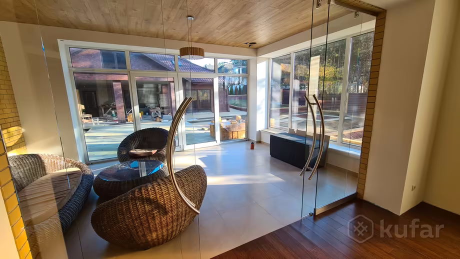 На надзеле ў 18 сотак размешчаны асноўны дом 305 м. кв. з дызайнерскім рамонтам, а таксама гасцявы дом з лазняй, басейнам, тэрасай агульнай плошчай 165 м. кв.