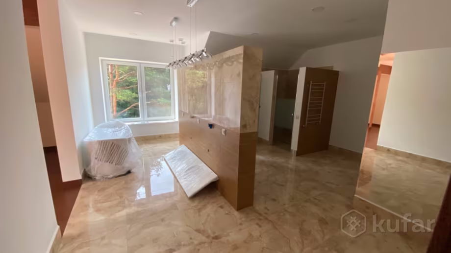 У новым, 2020 года пабудовы, трохпавярховым доме – больш за пяць пакояў, уладкаваныя кухня і санвузлы. Ёсць каміны, сігналізацыя і кандыцыянеры. Надзел акружаны лесам.