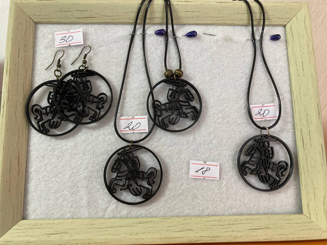 Сярод майстроў ёсць і беларусы, якія займаюцца рамяством за мяжой. Напрыклад, гродзенец Вадзім Саранчукоў, які робіць падвескі і завушніцы з гербам Гродна. . “Ён прылятае, прывозіць свае вырабы. Зараз чакаем, што новага прывязе ў бліжэйшы час”.
