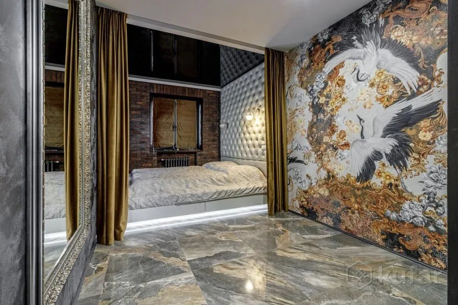Ад іншых варыянтаў гэты адрозніваецца цікавым рамонтам. У кватэры – дзве спальні, шмат люстэркаў і люстраной пліткі, на некаторых сценах імітацыя цэглы. Вокны выходзяць на двор, усе славутасці ў крокавай даступнасці (бліжэй за ўсё Музей Багдановіча і лютэранская кірха). У кватэры добрая бытавая тэхніка, у тым ліку разумны ўнітаз. У ваннай устаноўлены бойлер, таму адключэнне гарачай вады летам турыстам не пагражае. Цэны ў выхадныя і святы будуць вышэйшыя.