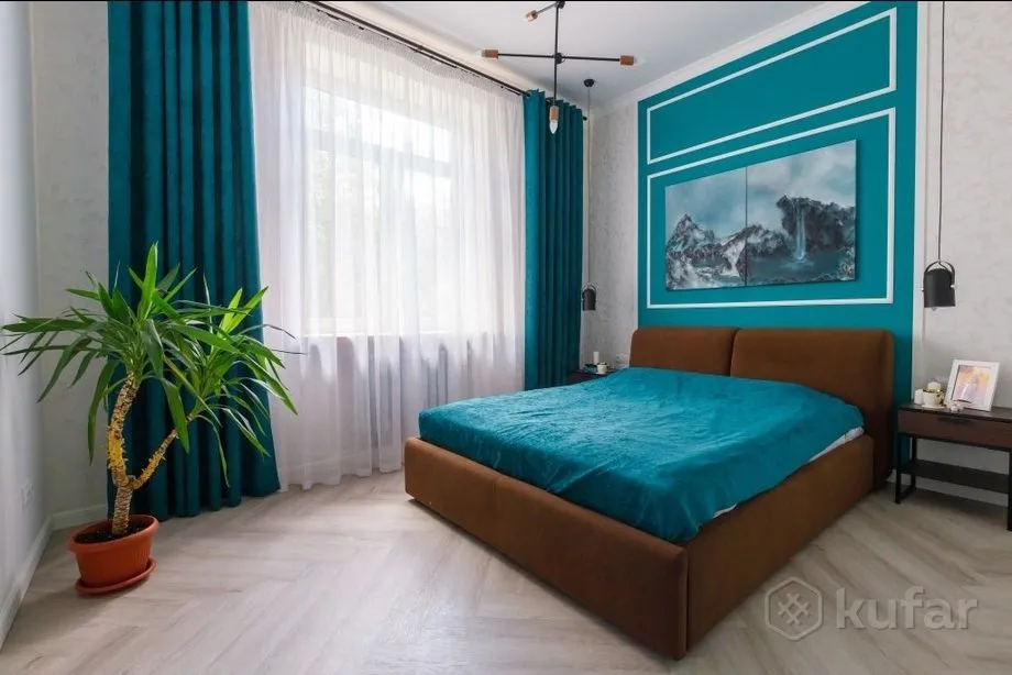 Рамонт кватэры выкананы ў блакітна-белых танах і нагадвае марскія апартаменты. Ёсць асобны пакой з двухспальным ложкам і гасцёўня з канапай і тэлевізарам. На кухні ёсць пасудамыйка, а гэта аказалася рэдкасцю нават для дарагіх кватэр у Гродне. Ёсць балкон, а вокны выходзяць як на двор, так і на вуліцу.