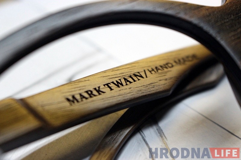 “Мы заўсёды хацелі ствараць нешта стыльнае і арыгінальнае – з акулярамі так і атрымалася, – распавядае Аляксандр. – У 2015 годзе мы былі першымі ў Беларусі, хто стаў асвойваць такі прадукт. Справы не адразу пайшлі паспяхова. Першую аправу мы прадалі толькі ў 2016 годзе. Але ўжо праз год мы здолелі наладзіць вытворчасць і сталі прадстаўляць уласны брэнд “Mark Twain”.