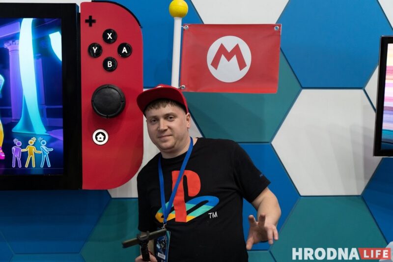 У адной з зонаў пляцоўкі кіберспорту гродзенец Сяргей Баркоўскі прадстаўляў гульнявую прыстаўку Nintendo Switch. “Я сам гуляю і разумею ўладальнікаў Nintendo Switch. Гэтая рэч для многіх навіна. Мы хацелі падтрымаць кліентаў і гульцоў. Я сказаў – хачу вялікую прыстаўку Nintendo! Ёсць маленькая, а мы зрабілі тату-Nintendo, бо Nintendo гэта бацька ўсіх прыставак”, – падзяліўся з карэспандэнткай Hrodna.life Сяргей.