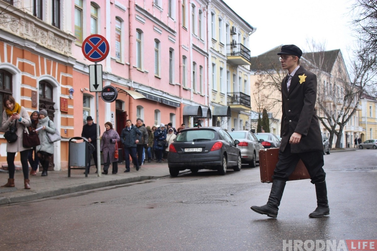 Удзел у памятным мерапрыемстве прынялі акцёры гродзенскага фрык-тэатра “Гексаген”. У 2019 годзе гэта ўжо другое касцюміраванае прадстаўленне па тэме трагедыі габрэяў Гродна. Акцёры робяць гэта як валанцёры, галоўная іх задача – паказаць трагедыю і ў якіх умовах апынуліся гродзенскія габрэі падчас Другой сусветнай. У канцы вайны з 29 000 гродзенскіх габрэяў у жывых засталося каля 300 чалавек. У родны горад вярнуліся толькі некалькі дзясяткаў.