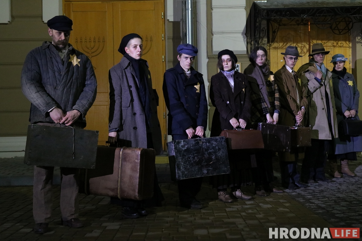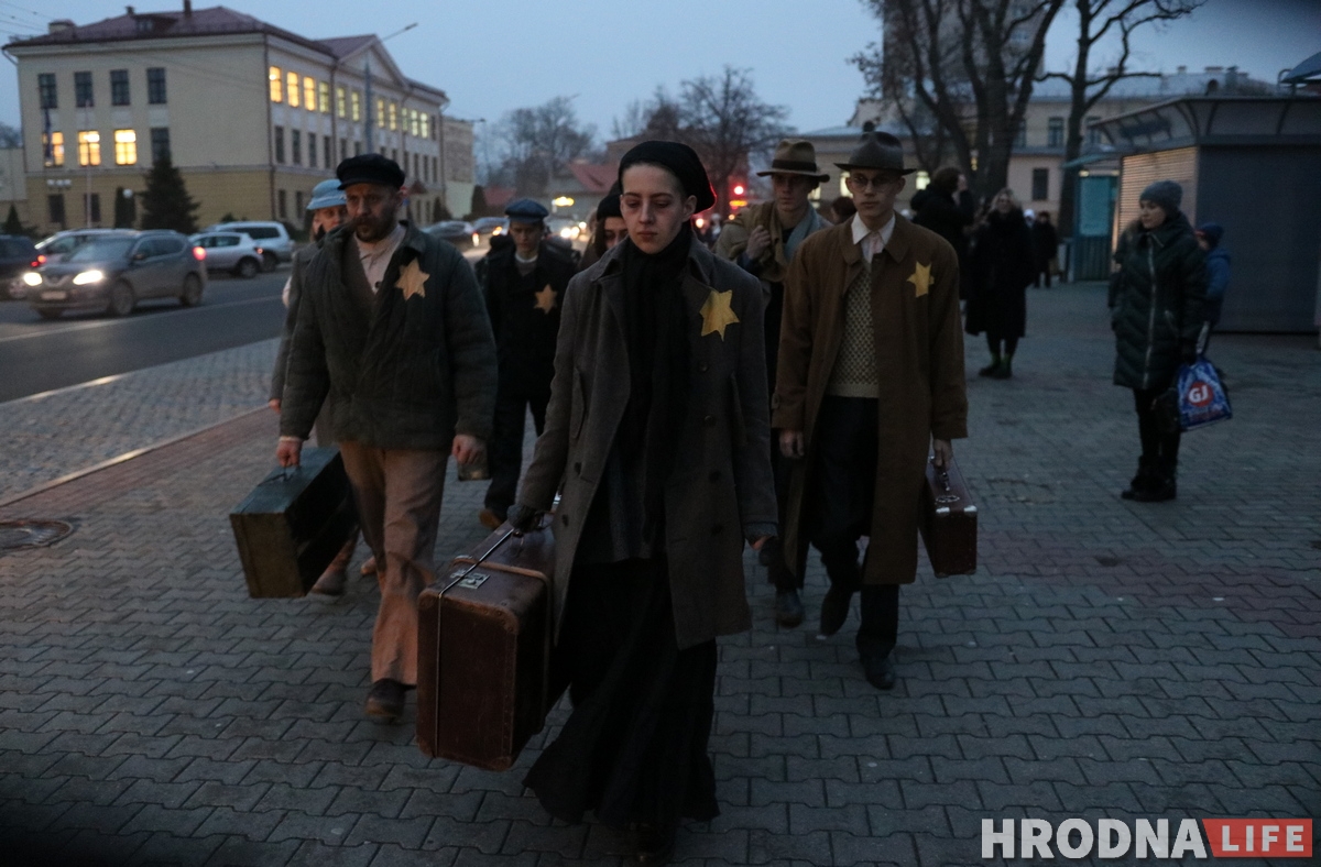 У міжнародны Дзень памяці ахвяраў Халакосту акцёры фрык-тэатра “Гексаген” прайшлі ў касцюмах вязняў гета па цэнтры Гродна. Акцыю арганізавалі, каб нагадаць гараджанам пра загінуўшых у лагерах смерці суайчынніках.
