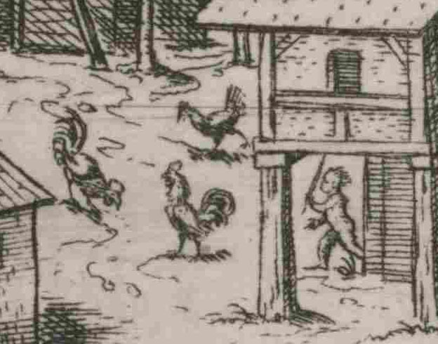 Хлопчык ганяе пеўніка. Гравюра Цюнта