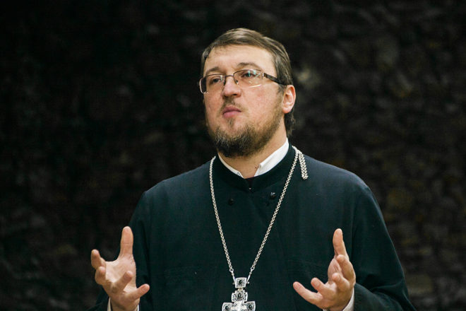 – У нашай царкве не існуе сакральных моваў. Кожная мова, на якой гавораць людзі, годная таго, каб на ёй звяртацца да Бога. Асабіста я практыкую служэнне беларускай літургіі. Кажу пропаведзі па-беларуску. І калі нехта кажа, што можа быць толькі адна «сакральная» мова, то гэта не адпавядае праваслаўнай традыцыі. Не адпавядае самой сутнасці менавіта той традыцыі, якую заклалі святыя Кірыл і Мяфодзій. Лічу, што царкоўнаславянская мова павінна быць асноўнай мовай набажэнства – гэта наша старажытная каштоўная спадчына. Але, пры гэтым, я выступаю і за тое, каб была магчымасць маліцца на той мове, на якой людзі хочуць маліцца. Хочуць царкоўнаславянскую – добра. Хочуць па-беларуску – будзем маліцца па-беларуску. Жадаюць маліцца па-расейску – і тут праблемы быць не павінна. Захочуць іншыя народы пачуць літургію на сваёй мове – і тут патрэбна быць заўсёды гатовымі.