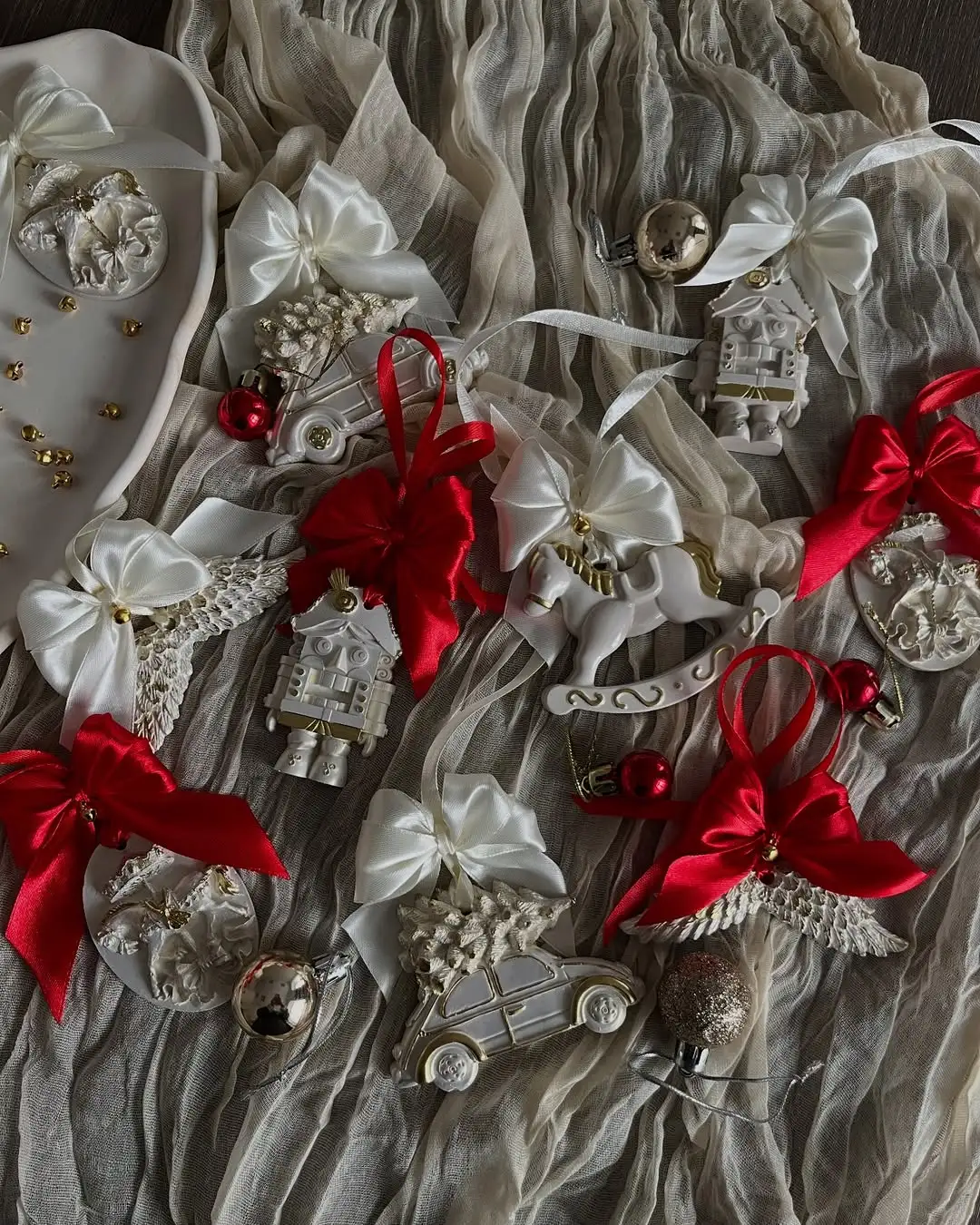Гродзенская студыя дэкору Vetta падрыхтавала калекцыю ёлачных цацак ручной вытворчасці. У наборы Шчаўкунчык, машынка і конь, але можна купляць і паштучна. Акцэнтныя адценні цацак – залатая паталь і перламутр.