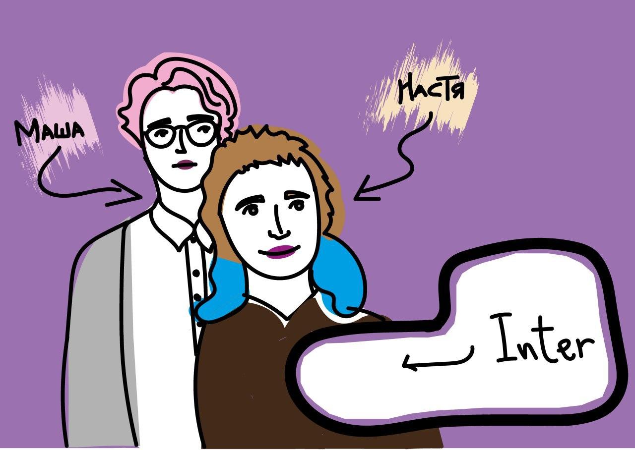 Мы, наверное, день сидели, искали название, и как-то к нам пришло слово «интерсекциональность», «интер». Я как раз рисовала – люблю что-то выводить на бумаге, пока думаю. И вот пришло «интер», а на клавиатуре есть кнопка «энтер». И я нарисовала нам эту кнопку, которую нажимаешь, и все вокруг сразу начинают использовать інтэрсекцыянальны падыход.