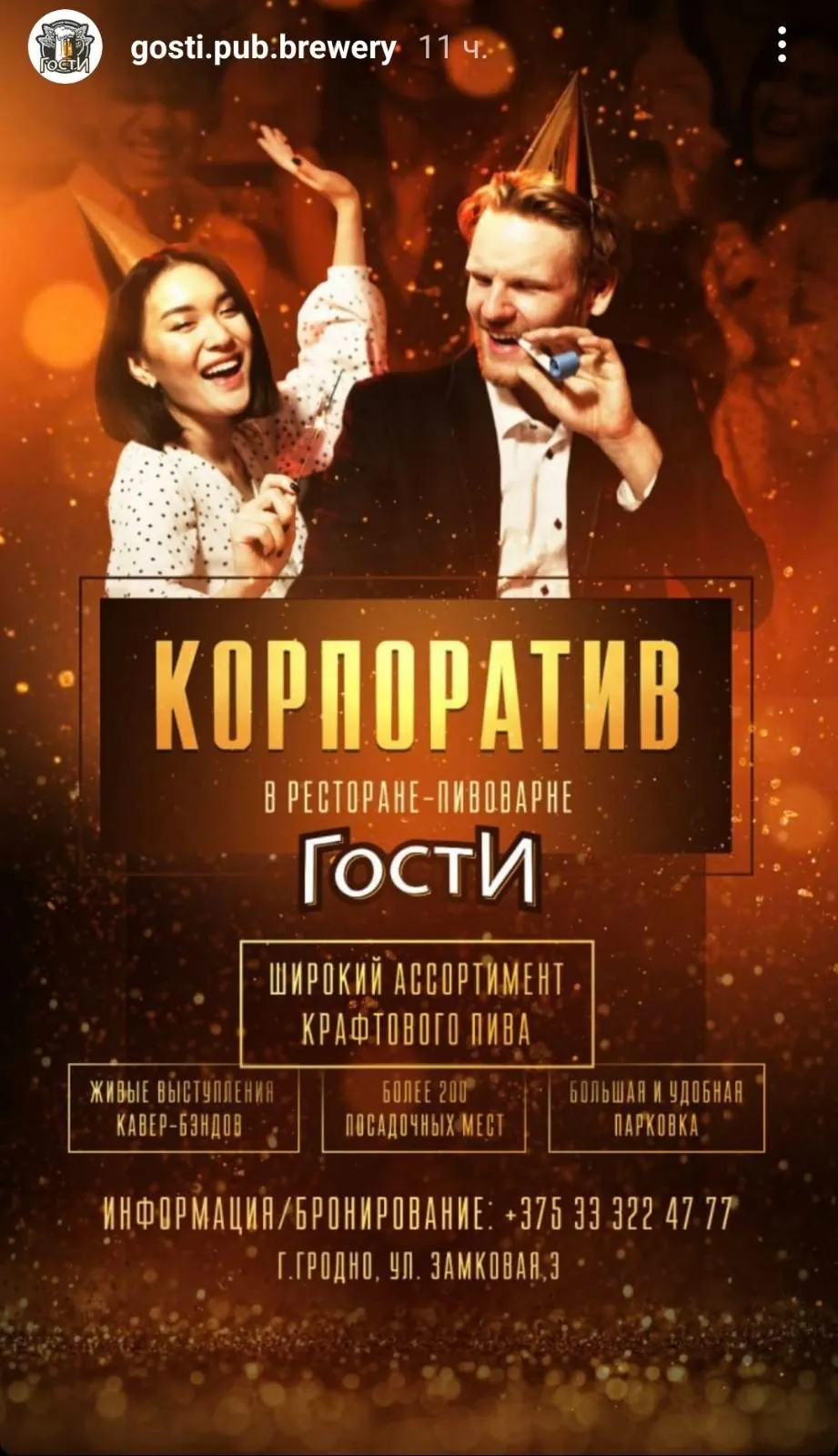 Навагодні карпаратыў можаце адзначыць і ў рэстаране-бровары “Гости”!