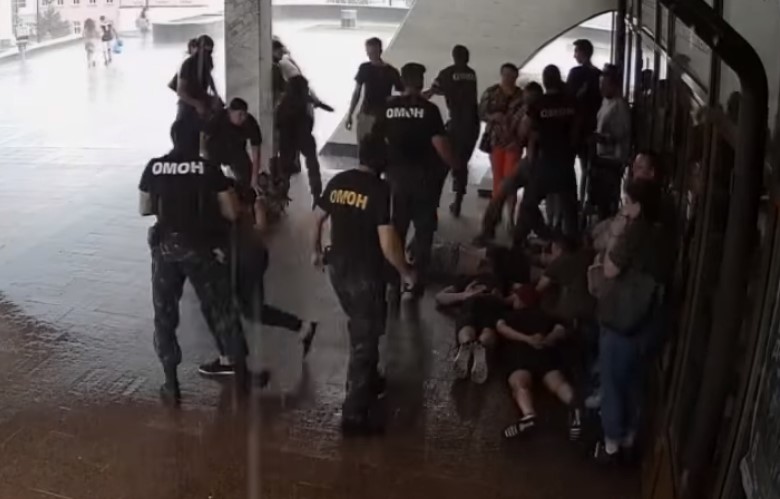 Первым на кого налетели омоновцы был Кирилл. Это его бьет ногой сотрудник в маске, а потом кидает на плитку.