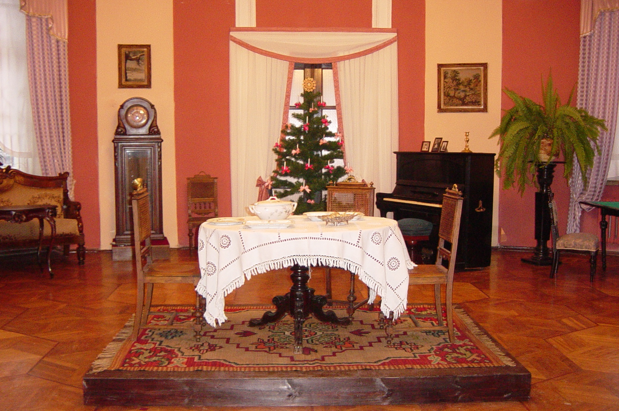 Публічныя ёлкі для ўсеагульнага святкавання ставілі на цэнтральных плошчах, а знатныя людзі і высокія чыны ўбіралі вялікія прыгожыя ёлкі ў сваіх дварах і гасціных. У тыя часы ёлкі ўпрыгожвалі свечкамі, пернікамі, арэхамі ў яркіх абгортках, мандарынамі, зваранымі ў мёдзе яблыкамі і сушанай садавінай. Пазней да гэтых упрыгажэнняў дадаліся цукеркі, выразаныя з кардону фігуркі людзей і жывёл, анёлы і званочкі, яркія ліхтарыкі і папяровыя гірлянды. Верхавіну ёлкі вянчала яркая прыгожая зорка.
