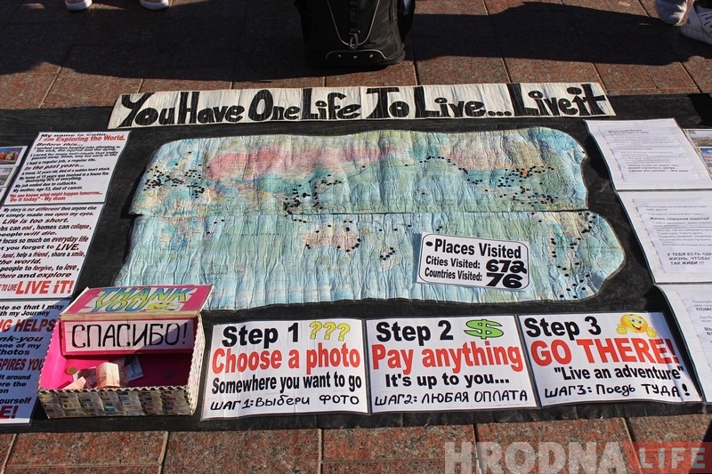 «Жыццё адно, дык пражывіце яго». Падарожнік з Канады прадаваў у цэнтры Гродна свае фатаграфіі і распавядаў пра прыгоды