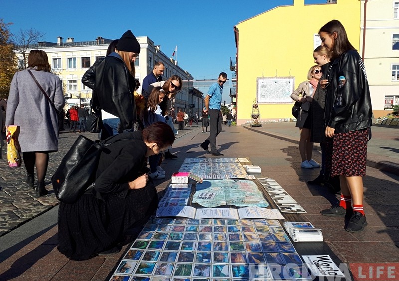 Не паспеў канадзец раскласці свае фатаграфіі на плітцы ў цэнтры Гродна, як вакол яго утварыўся круг з цікаўных людзей.