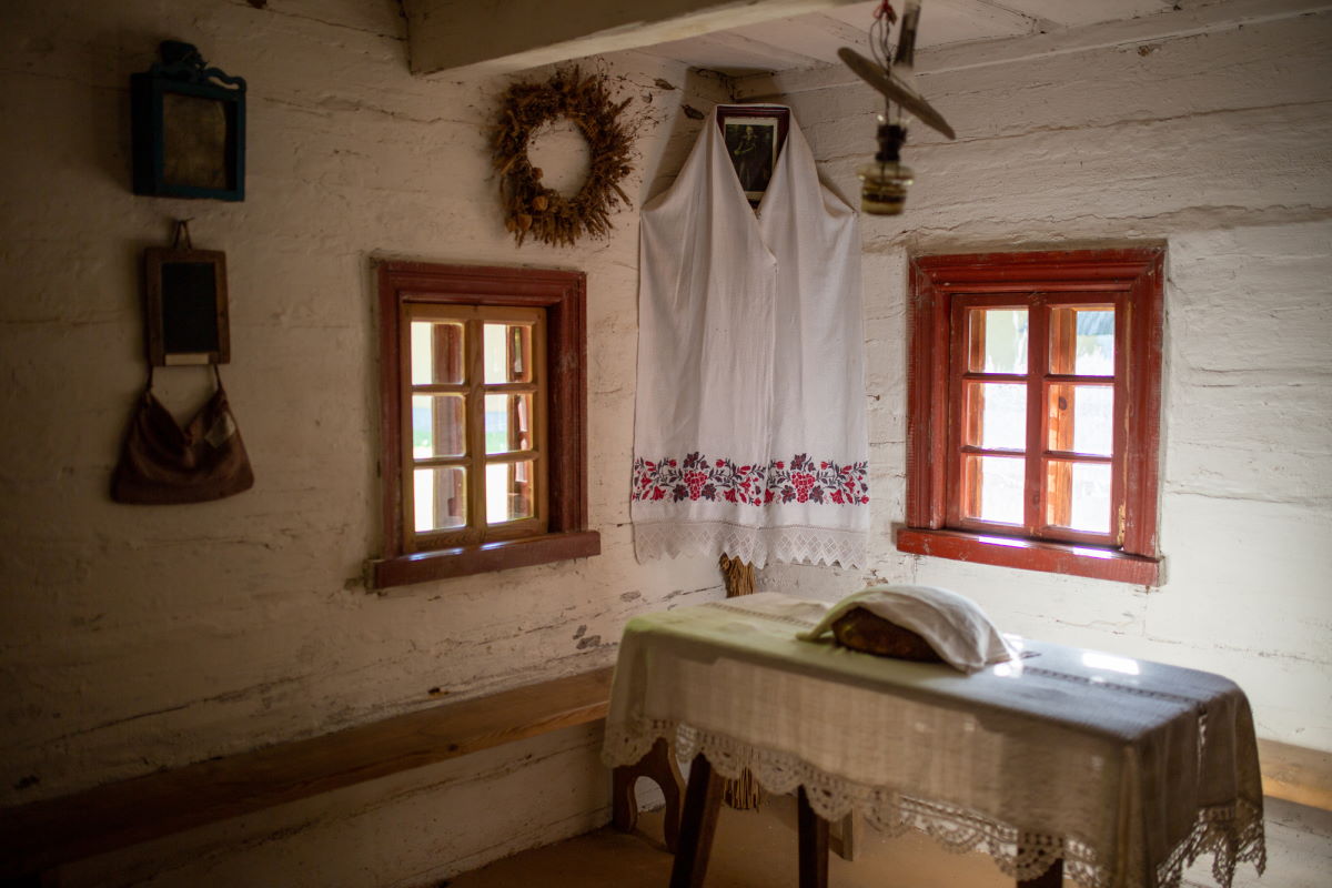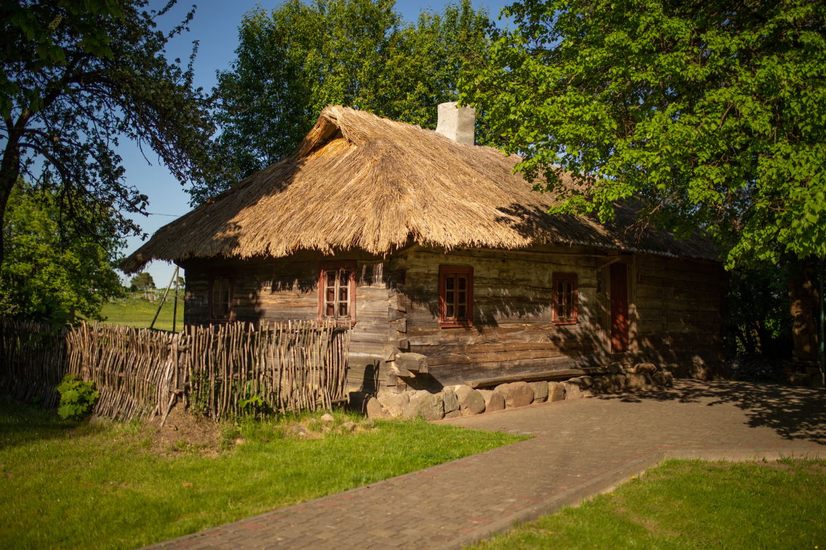 За музеем стаіць старая хатка з саламяным дахам і нізкімі столямі, у якой захаваліся рэчы тагачаснага ладу жыцця. Тут старая мэбля, калыска, цагляная печ, посуд і шмат іншых рэчаў штодзённага ўжытку тых часоў. Іх прызначэнне амаль забытае. У вялікім плеценым кошыку, напрыклад, захоўвалі малады сыр.