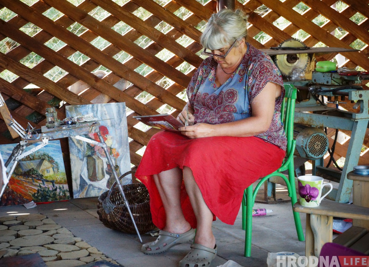 «Гэта мой першы пленэр, – кажа мастачка з Гродзенскай абутковай фабрыкі Нэлі Лукашык.- Вельмі ўдзячна за запрашэнне. Столькі часу маляваць – гэта мара любога мастака. На працы больш тэхнічнай работы. На малюнкі можна  хіба ўрваць хвіліну дома»