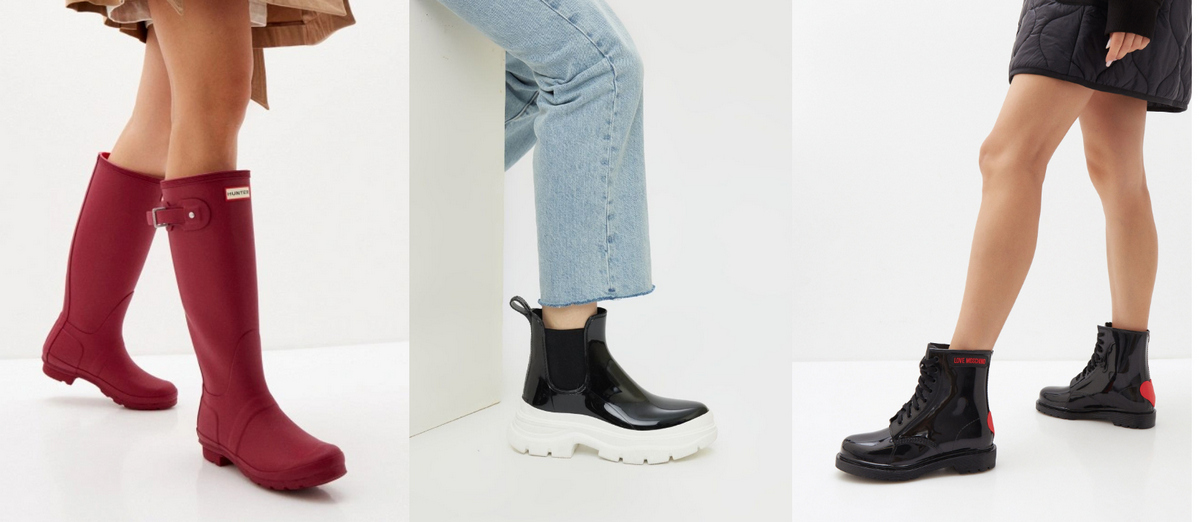 Доўгія гумовыя боты Hunter – 412 рубля і чаравікі на маланцы за 105 рублёў