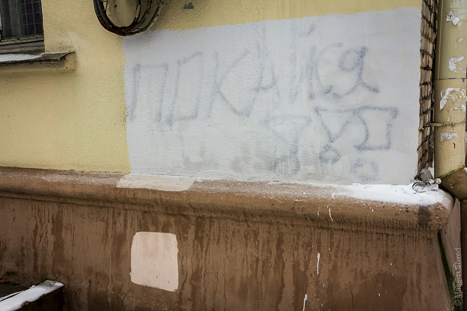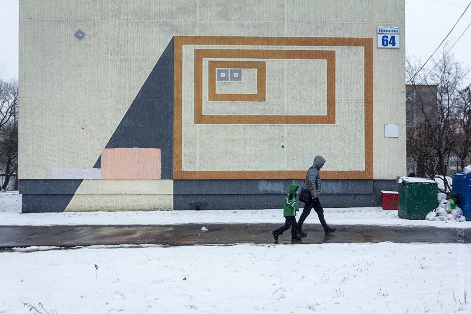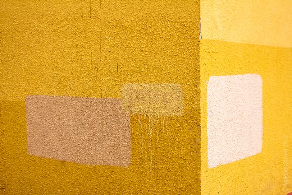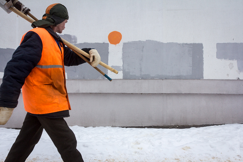 З часам у сваім захапленні я пачаў шукаць новыя формы. Хацелася рабіць нешта з іншым кірункам мыслення. Больш фармальнае і абстрактнае – не звязанае з жыццём і чаканнем нейкага «вырашальнага моманту». Так я звярнуў увагу на рознакаляровыя фігуры на сценах, якімі камунальныя службы зафарбоўваюць графіці, тэгі ды іншы стрыт-арт.