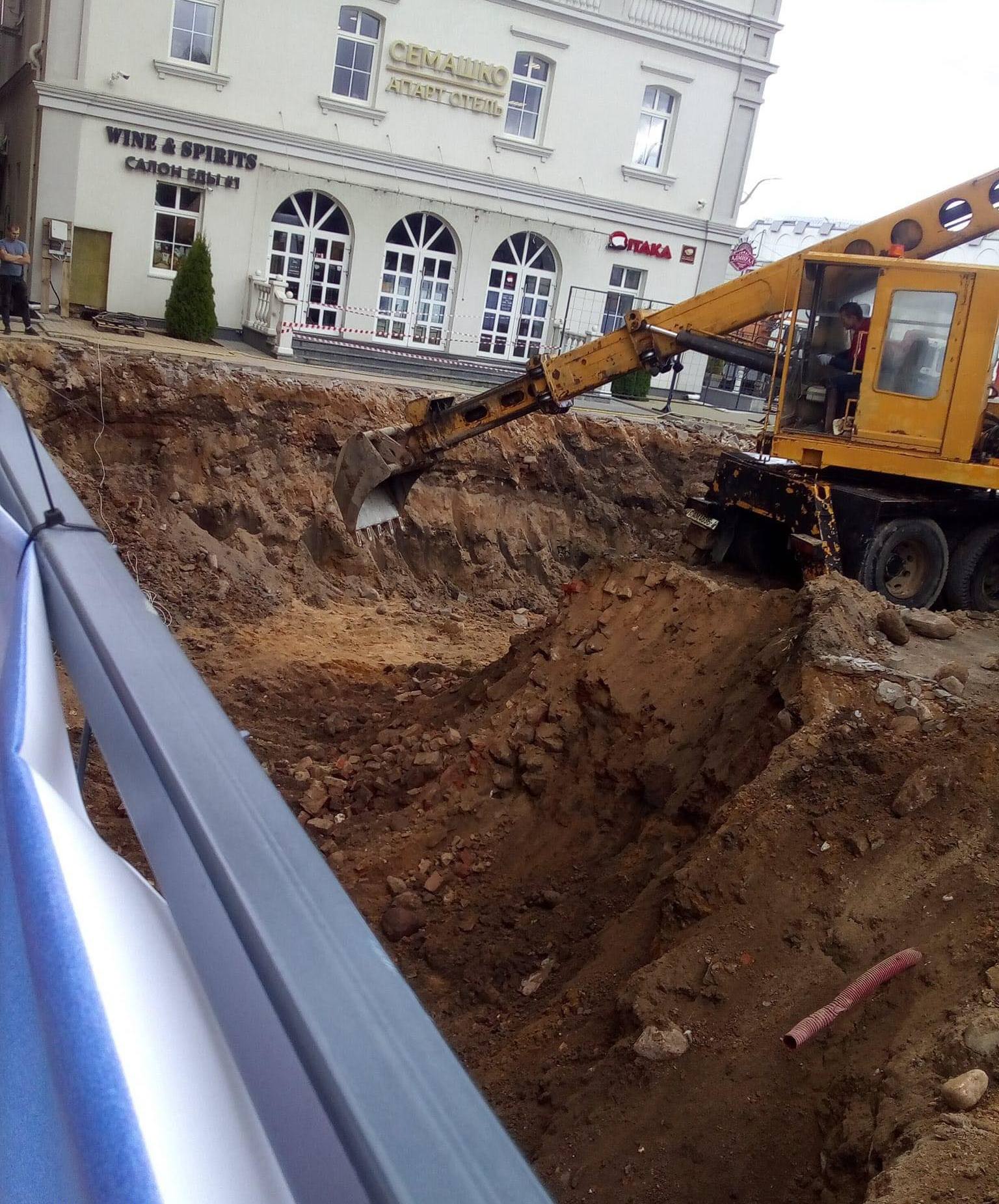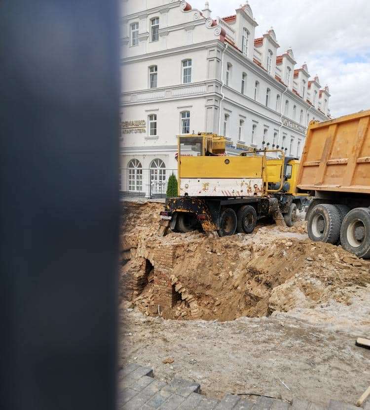 Працы на ўчастку пачаліся 13 верасня. Згодна з законам, перад будаўніцтвам у ахоўнай зоне гістарычнага цэнтра Гродна, які з’яўляецца гісторыка-культурнай каштоўнасцю, мусяць быць праведзеныя раскопкі. У гэтым выпадку іх не было.