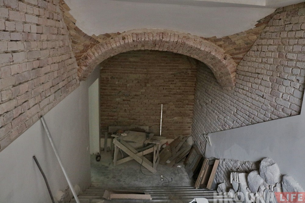 “Аб’ект складаны. Трэба было сур’ёзна папрацаваць, – распавядае ўласнік памяшкання Уладзімір. – Тут у савецкія гады было бамбасховішча на выпадак ядзернай вайны, усё было затынкавана і застаўлена рознымі прадметамі. Усе працы трэба было ўзгадніць з Мінкультам, каб нічога не парушыць. Склеп вельмі стары, дзе-нідзе яго перараблялі. На аднаўленне сышло з перапынкамі каля пяці гадоў”.