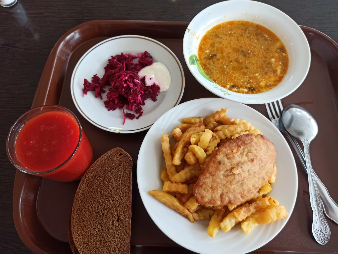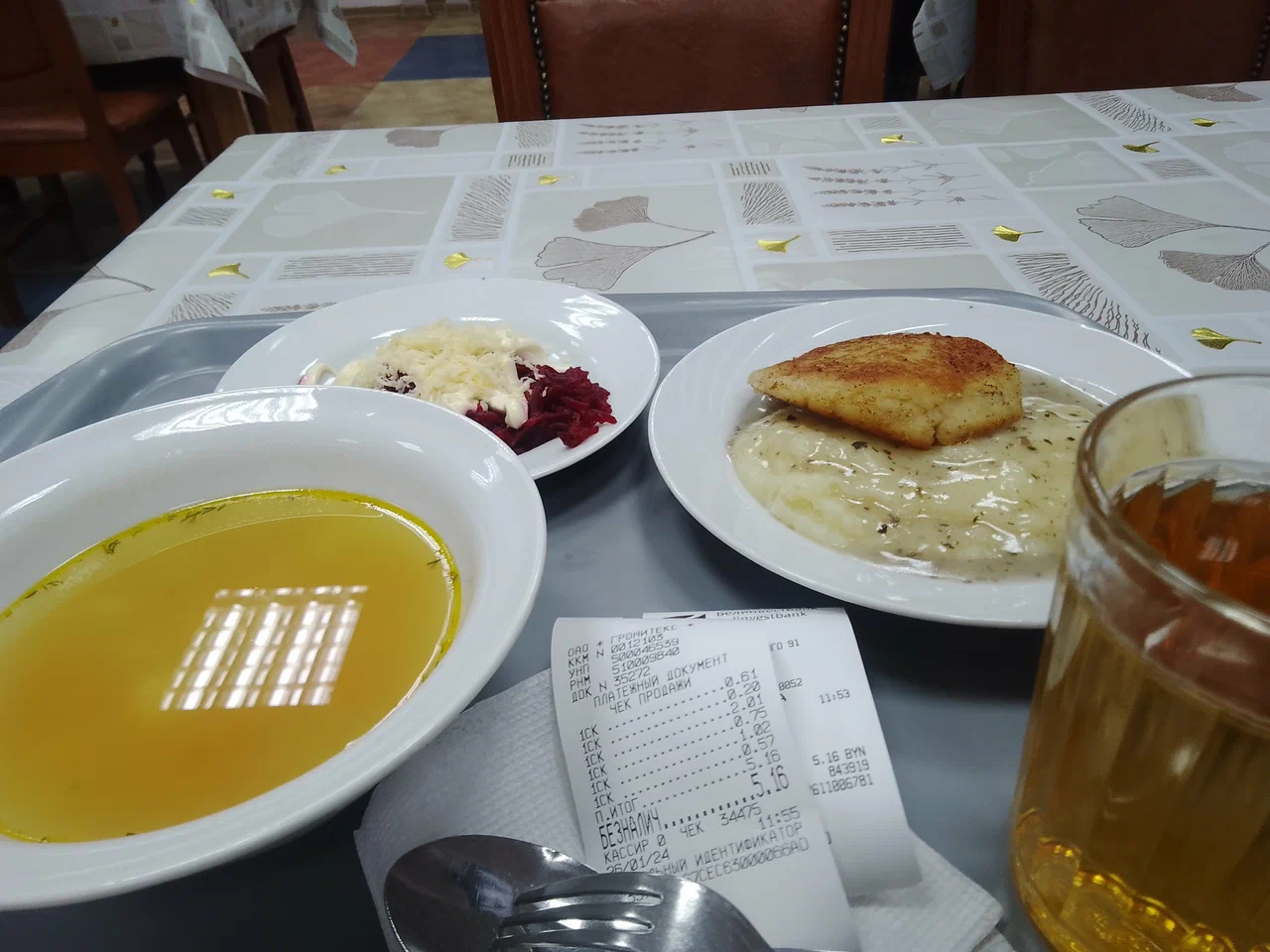 Рэйтынг у Google Maps у сталовай — 4,3 зорачкі. Сярэдні чэк за абед — 12 руб. Раней было яшчэ танней: у 2024-м за боршч, тушаную капусту з катлетай, салат і кампот можна было аддаць не больш за 8 рублёў. Зараз карыстальнік пад нікам Эсберн за адну толькі катлету ў паніроўцы аддаў амаль 4 руб.