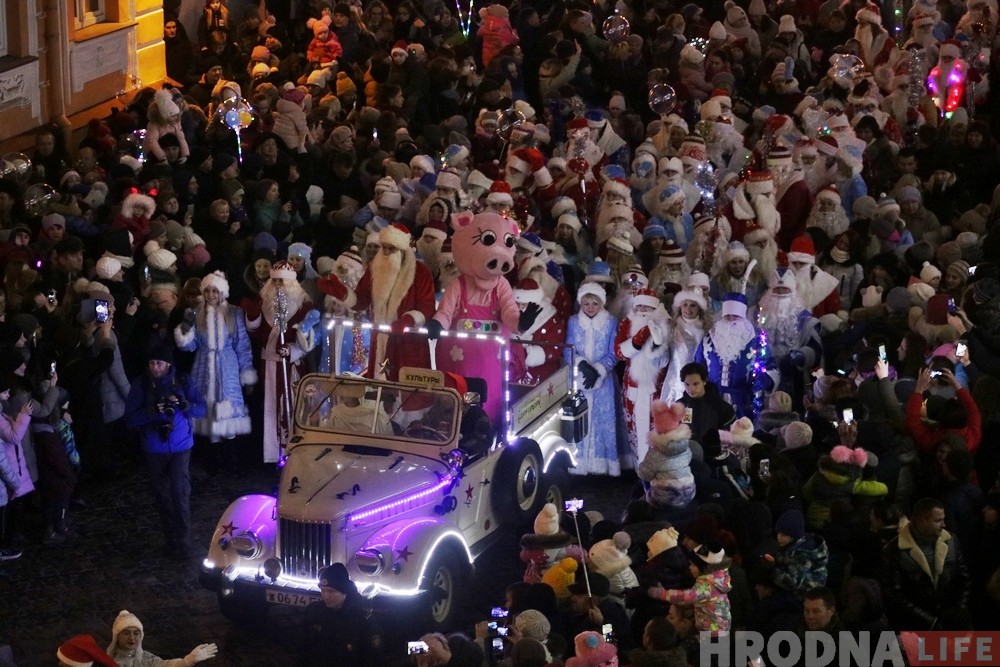 У гэтым годзе галоўны Дзед Мароз разам з сімвалам 2019 года свіннёй перасоўваўся па горадзе на рэтра-аўтамабілі.