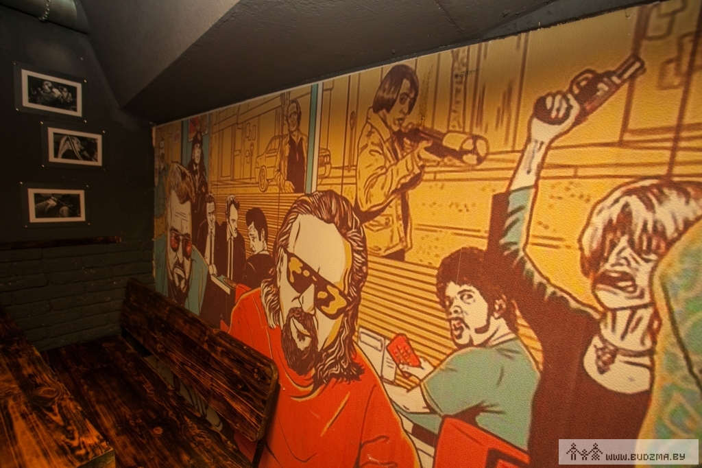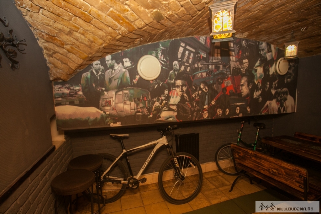 Сёння на сценах бара — сапраўдная партрэтная галерэя: ад Озі Озбарна да Алеся Дзянісава. Там-сям замалёўкі з коміксаў у стылі Таранціна і Гая Рычы, прыглушанае святло, фактура з чырвонай цэглы, і ўсё гэта ў сутарэннях канца ХІХ стагоддзя.