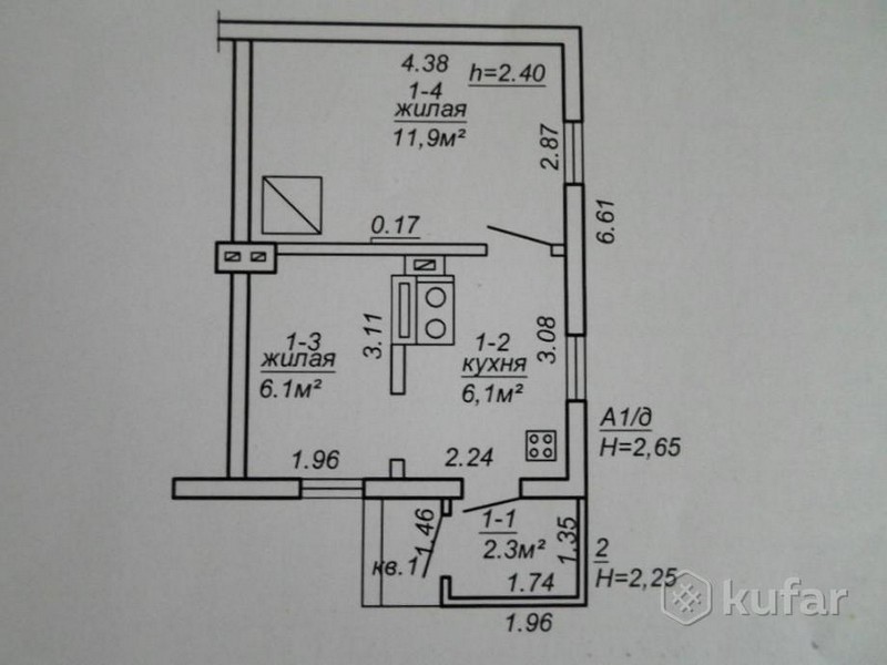 Аднак невялікая плошча — 32 «квадраты», малая кухня — 5,9 «квадраты». Санвузел сумесны. Газавая калонка.