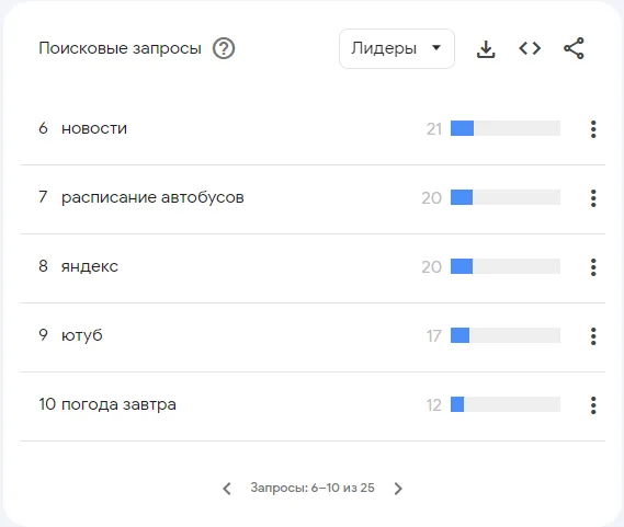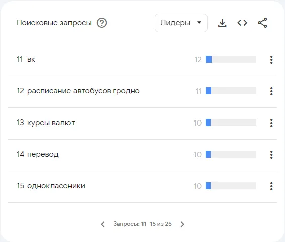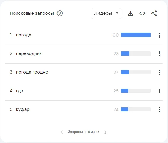 “Лідары” ці “топ” – гэта проста самыя папулярныя тэмы і запыты, незалежна ад росту папулярнасці ў параўнанні з мінулым годам.