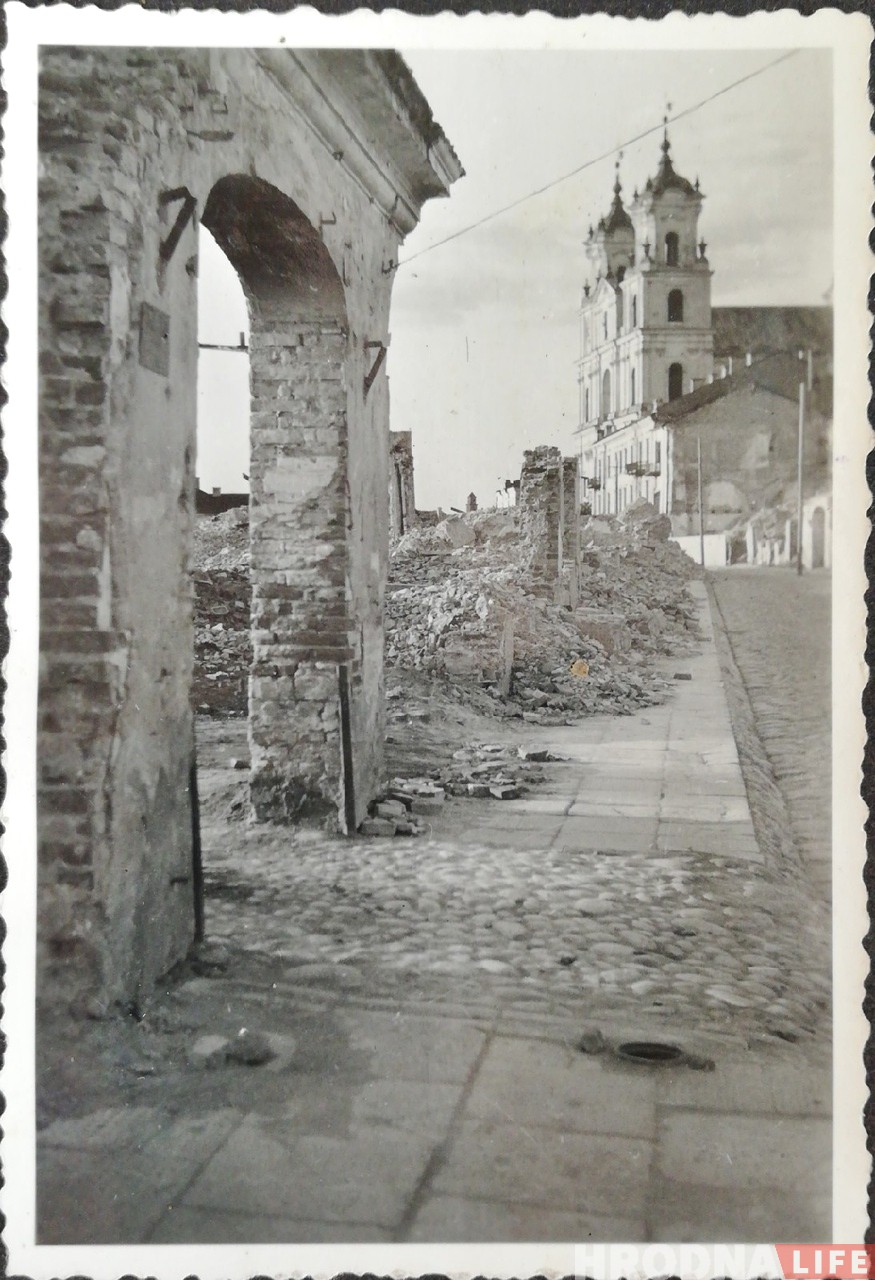 На фота: разбураны цэнтр Гродна, 1940-я гг. З архіву сям’і Узнаньскіх