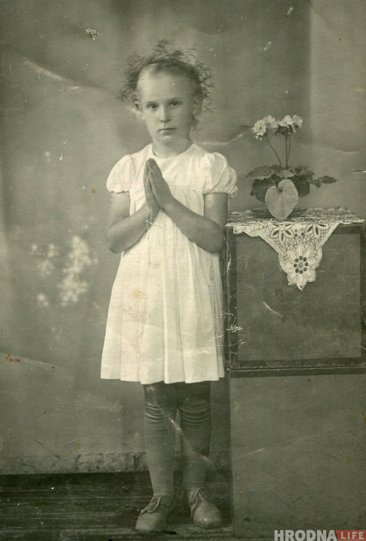 Да вайны ў касцёл мы хадзілі па Жвіркі і Вігуры [сучасныя вуліцы Чкалава і Асіпенкі – рэд.], далей па Завяршчызне, там па лесвіцы з выбітымі прыступкамі, далей выходзілі ў горад. Падчас нямецкай акупацыі гэтым маршрутам у горад прайсці было ўжо немагчыма. Немцы стварылі гета і нам трэба было абыходзіць яго і ісці праз Віленскую. Памятаю, мы неяк ішлі, а гета было акружана дротам, і многія яўрэі стаялі і глядзелі, хто са знаёмых ідзе па вуліцы. Памятаю, была ўжо зіма, перад самым Раством, мы з бабуляй ішлі ў касцёл і ля плота гета стаяла знаёмая яўрэйка, пані Цыва, якая да вайны працавала краўчыхай. І яна крычала нам гучна: “Пані Маня, скажыце, хай прыйдзе пан Петрук”. Я бабці сказала, што яе пазнала краўчыха. Але да плота падыходзіць было нельга, таму мы толькі памахалі ёй і пайшлі далей.