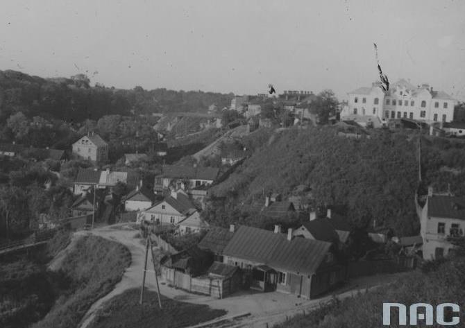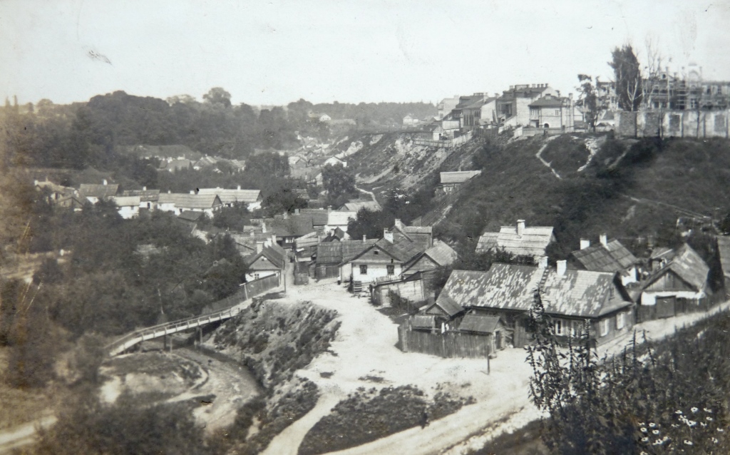 Пачатак спуска да Нёмана на малюнку Напалеона Орды 1860-х гг. і сёння. На старой выяве бачная шчыльная драўляная забудова знізу, а на гары забудова каралеўскіх стайняў. Адзін з флігеляў стайняў ацалеў дасюль, а другі згарэў у 1885 г. Таксама бачна ранейшая драўляная пажарная вежа.