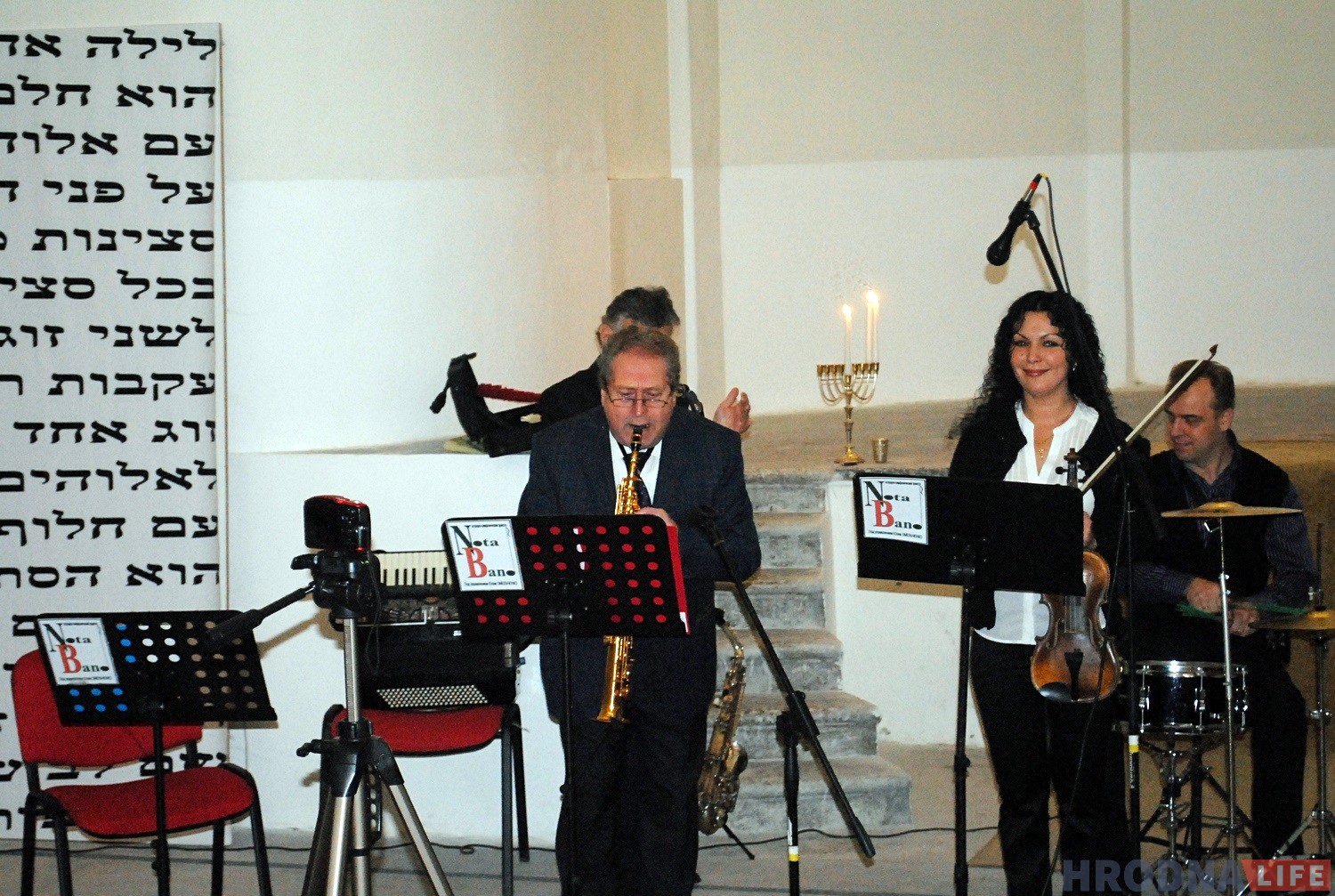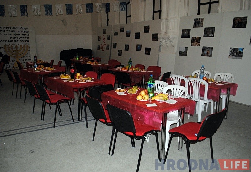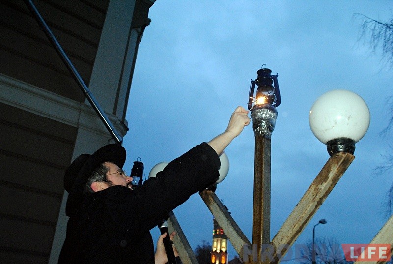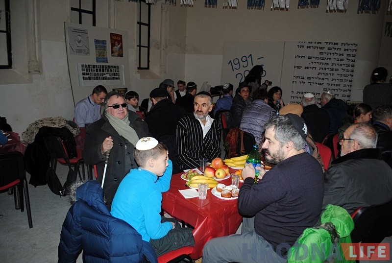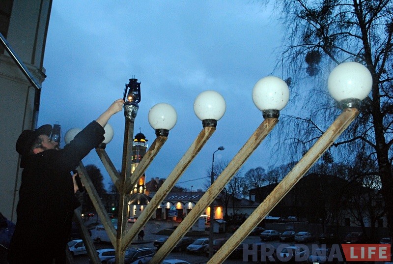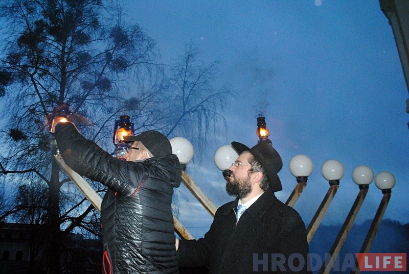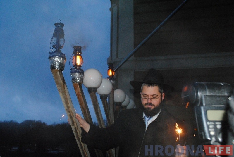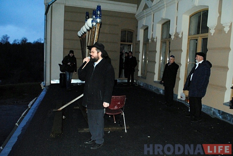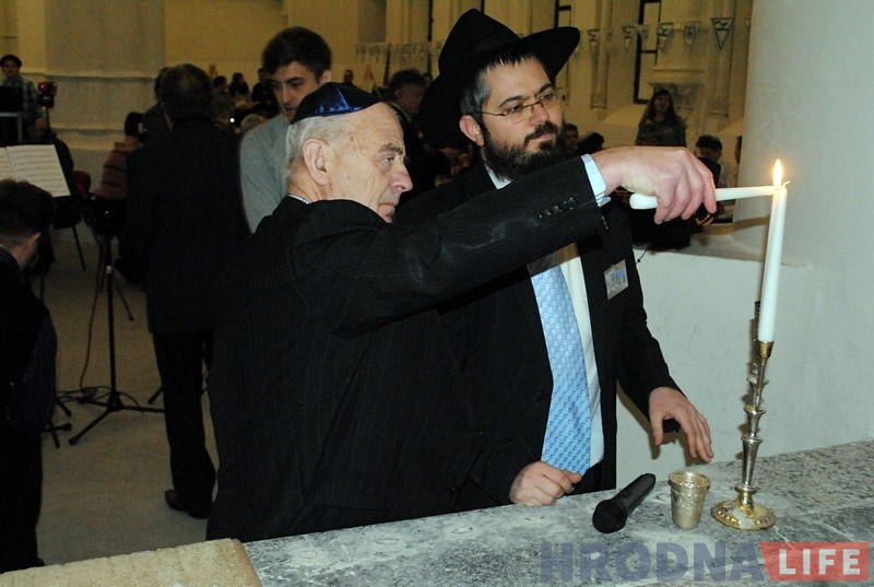 Гродзенскі рабін Іцхак Кофман і старшыня iўдзейскай абшчыны Барыс Квяткоўскі напачатку сказалі прамову i запалілі галоўныя свечкі горада на сінагозе. Дапамагаў ім у гэтым уладальнік “ЗОВ-мэбля” Алег Зухавiцкi.