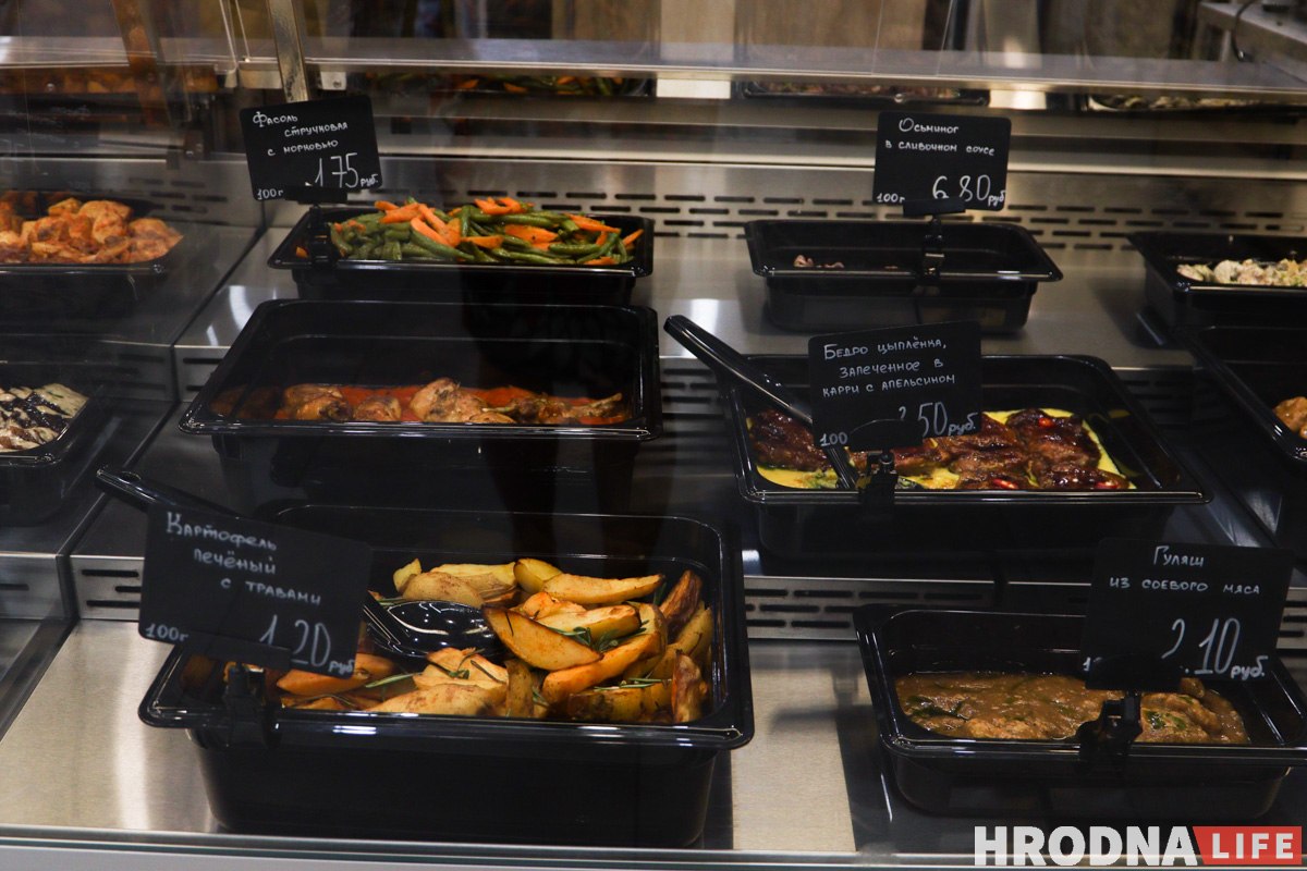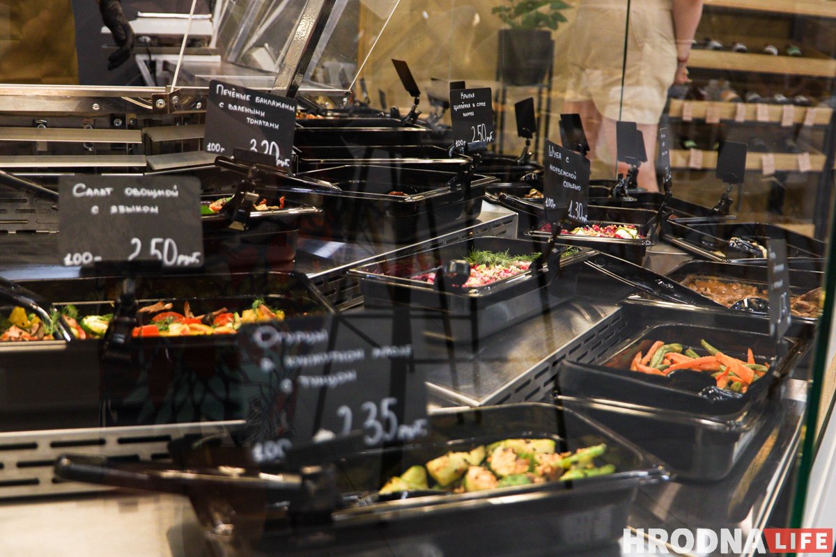 «Кулінарная крама – гэта стравы з вітрыны, гэта самы цікавы наш фармат», – кажа Наталля Дзяшко. Тут можна купіць ежу і з’есці яе на месцы, а можна забраць з сабой. У гэтай зоне ўпор рабілі на тое, каб кліенты не марнавалі час на гатаванне дома пасля працы. У бліжэйшы час таксама плануюць запусціць дастаўку.