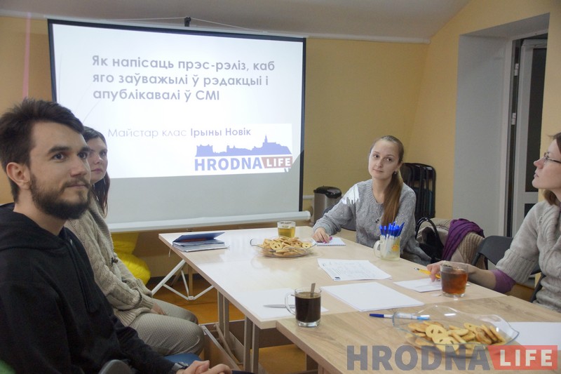 Пісаць цікавыя і эфектыўныя прэс-рэлізы вучыліся гродзенцы 13 красавіка на майстар-класе ў Рэсурсным цэнтры па развіцці дадатковай адукацыі дарослых. Магчымасцю абнавіць свой досвед і ўмацаваць сувязі з медыямі скарысталіся не толькі грамадскія актывісты, але і прадстаўнікі бізнесу ды ўстановаў культуры. Майстар-клас праводзіла рэдактарка Hrodna.life Ірына Новік.