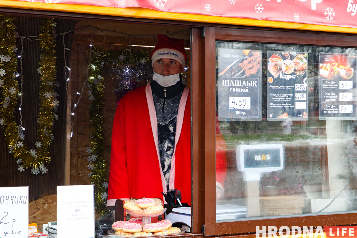 “Пандемия вносит коррективы, но стараемся все учесть”, – рассказал Hrodna.life распорядитель “Зімовага фэста” на Советской площади Егор Ратвинский. На ярмарке больше 20 участников – вместе с фудтраками, ресторанами и торговлей. 99% их – из Гродно.
