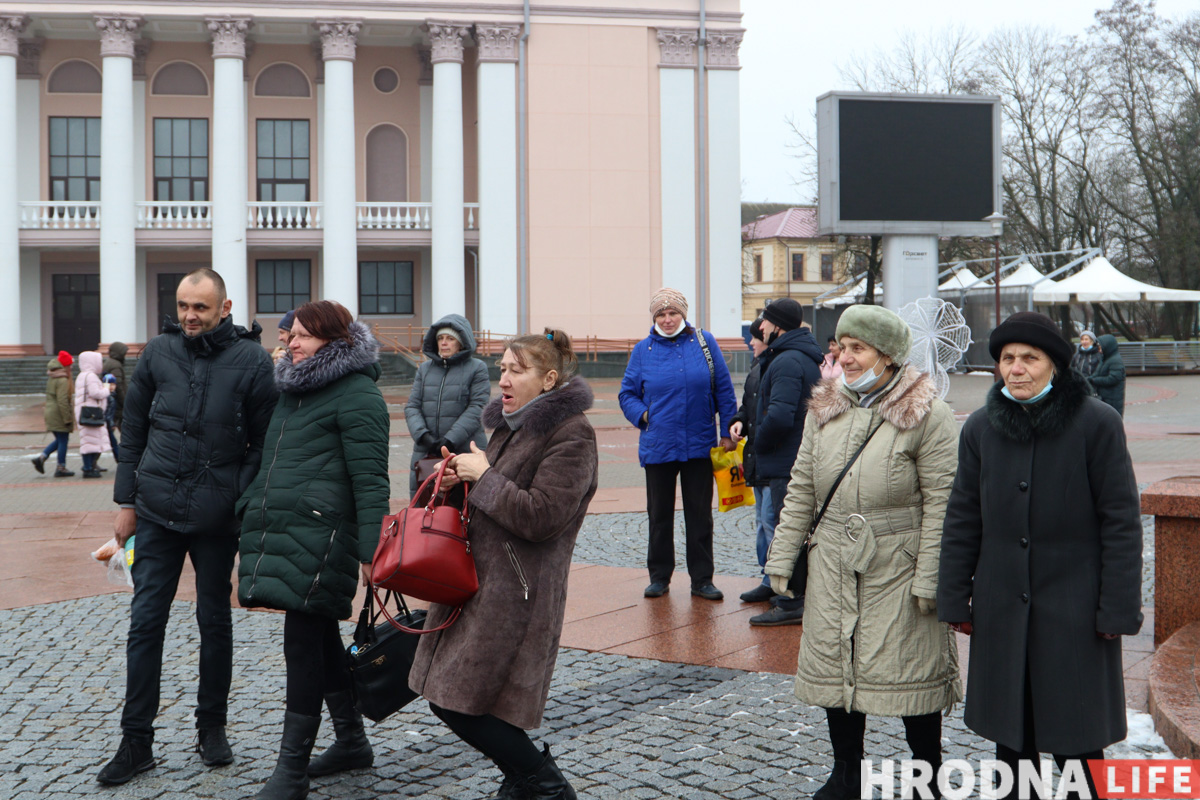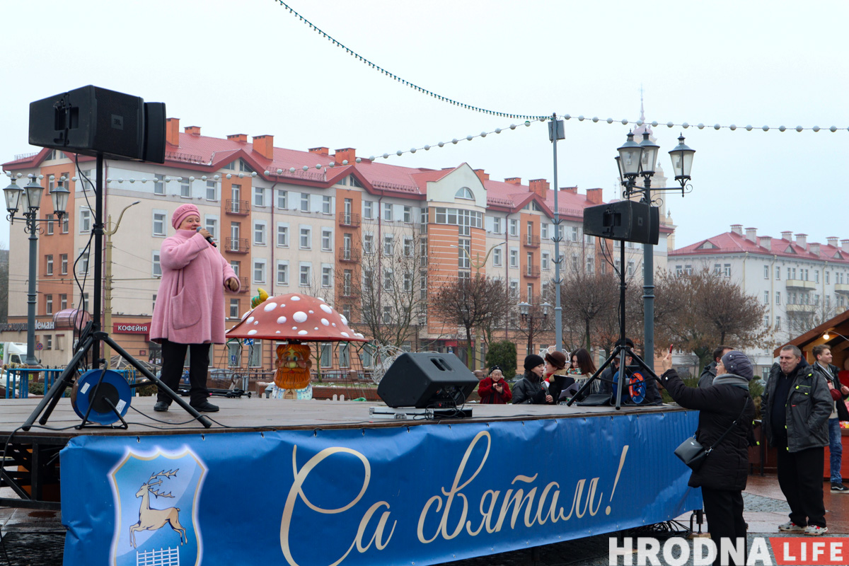 Возле елки на площади выступают музыкальные коллективы области и приглашенные гродненцы. Они и создают музыкальный фон днем. Слушателей немного.