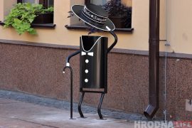 З 13 верасня ў цэнтры Гродна пачынаюць усталёўваць незвычайныя “сметніцы-джэнтльмены”, якія на пяці мовах дзякуюць мінакам за чысціню на вуліцах горада. Такі падарунак гораду…