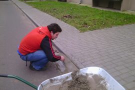 Па ўсім горадзе грэйдары прыбіраюць снег, а каля аднаго з дамоў па вуліцы Паповіча ў лютым прыбралі і самаробны бардзюрны пандус. Гэта прыстасаванне мясцовыя…