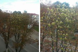 Гэтай навіной з рэдакцыяй «Лідскай газеты» падзялілася чытачка. «Вызірнула ў акно кватэры – і ахнула: сярод дрэў красуецца, быццам святочны, букет белых кветак, -…