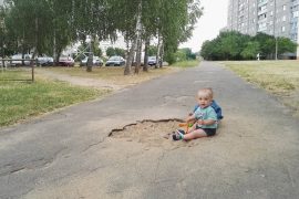 Пра гісторыю распавялі ў грамадзянскай ініцыятыве “Гародня”. У доме па вуліцы Рэпіна яшчэ год таму маленькія дзеці замест пясочніцы гулялі ў дзірцы ў асфальце…