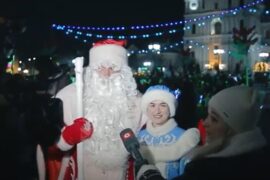 7 снежня ў Гродне запалілі навагоднюю ілюмінацыю – уключылі галоўную ёлку горада на Савецкай плошчы. Тут сабраліся некалькі дзесяткаў гродзенцаў. На сцэну выйшлі Дзед…