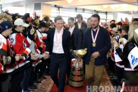 Ушанаванне хакейнага “Нёмана” праходзіла ў гродзенскім драмтэатры ў чацвер 19 красавіка. Там каманду павіншавала кіраўніцтва вобласці, спонсары і адданыя заўзятары. Перад уваходам у тэатр…