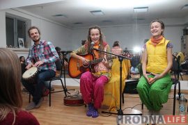 Гродзенцаў з парога сустракалі пірагом з тварогам і мятнай гарбатай. Усмешлівыя дзяўчаты-блізняты з дрэдамі настройваліся і распяваліся. Дзеці бегалі, чапляючыся за правады і чапаючы…