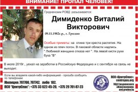 Гродзенскім РАУС адшукваецца гродзенец Дзімідзенка Віталь Віктаравіч, які нарадзіўся 09.11.1982. Асаблівыя прыкметы: на спіне тры крыжы распяцці. На адным з плячэй пагон. У пахвіннай…